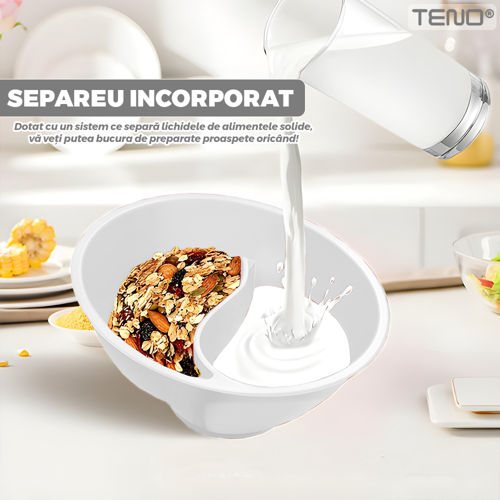 Bol Cereale 3 in 1 Teno2159, separator incorporat, maner dorsal de prindere, cereale crocante, universal, 18.5 x 10 cm, alb