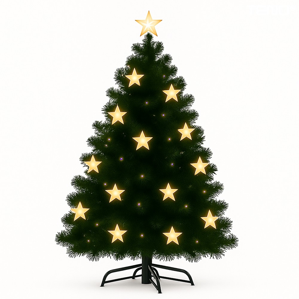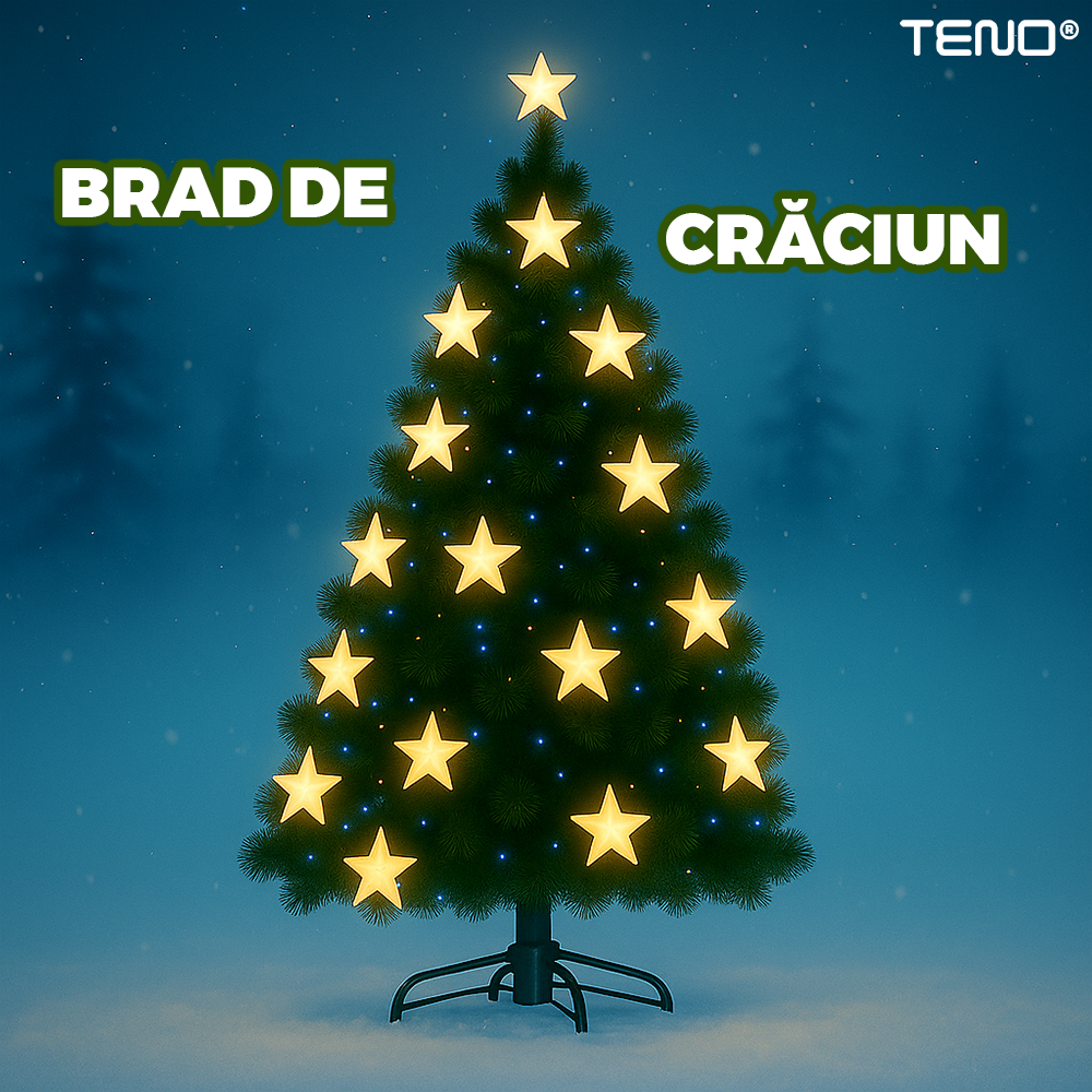 Brad Artificial de Craciun Teno2528, luminite in forma de stea, varf stea inclus, cadru metalic, atmosfera feerica, verde, 120 cm