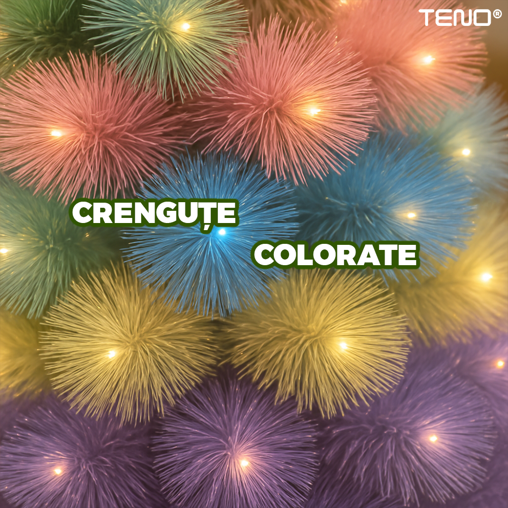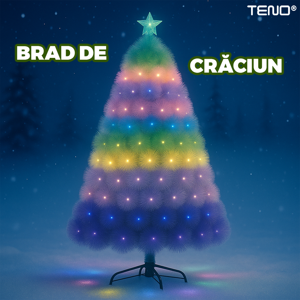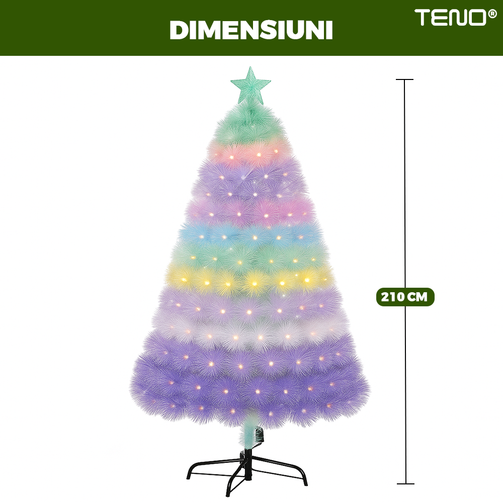 Brad Artificial de Craciun Teno2542, crengute colorate pastelate, varf stea inclus, cadru metalic, atmosfera feerica, verde, 210 cm