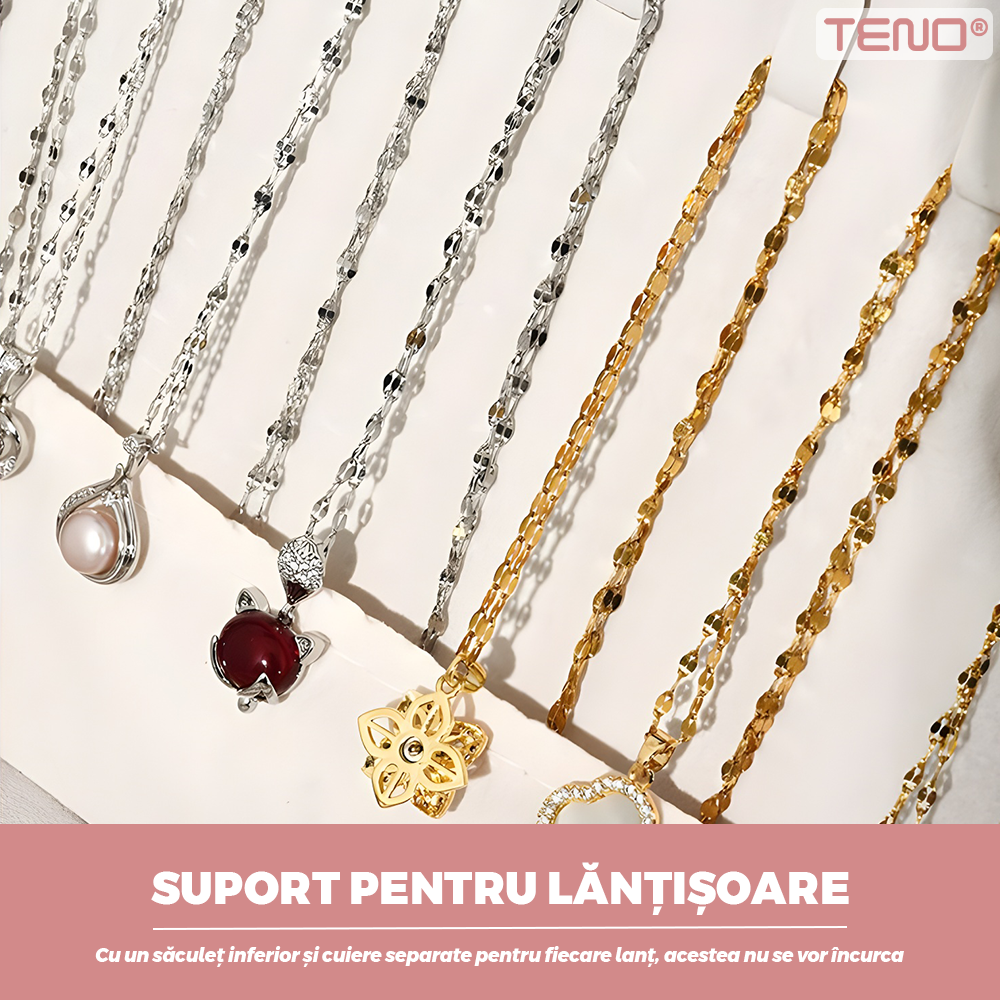 Dotata cu suport special pentru lantisioare, previne incurcarea acestora si pastreaza fiecare piesa usor de gasit si mereu gata de purtat.