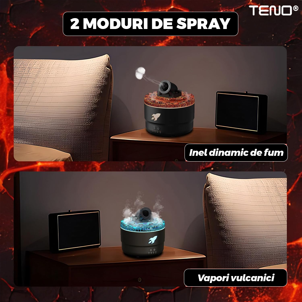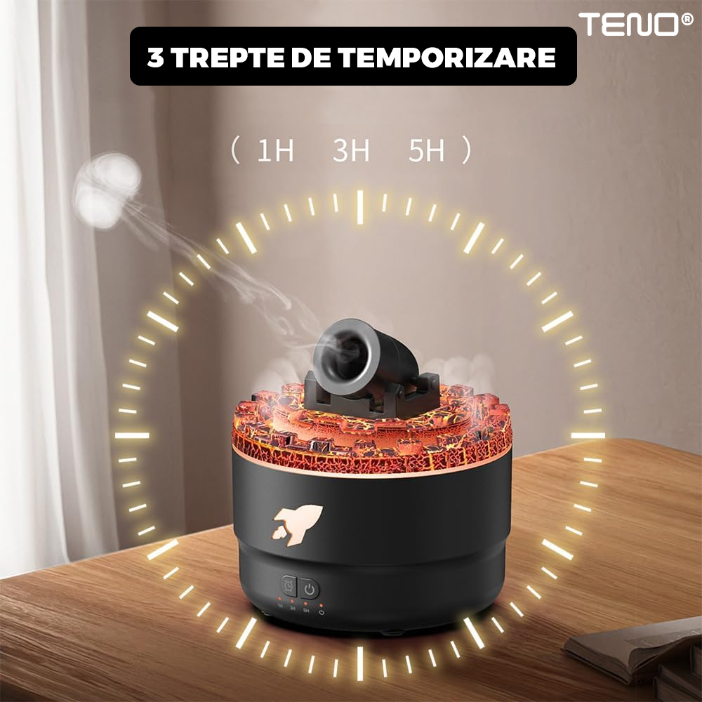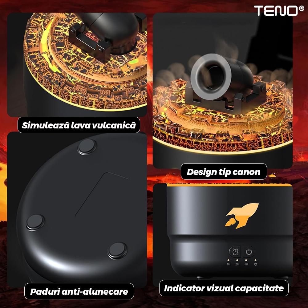 Difuzor Aromaterapie Teno2148, forma de tun, 7 culori LED, lumini dinamice, control tactil, capacitate 300ml, silentios, rezerva inclusa, umidifica aerul, negru