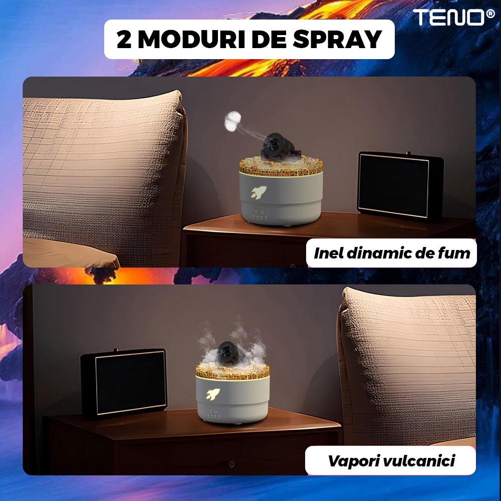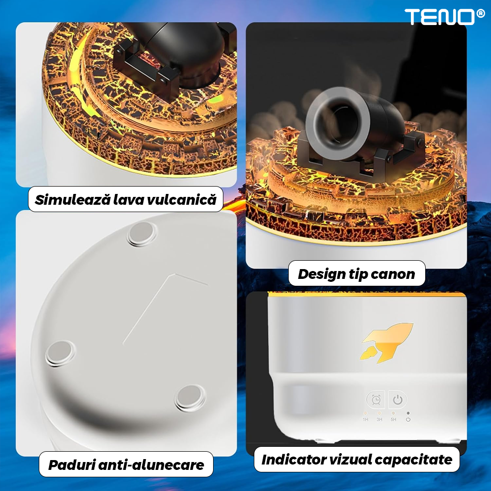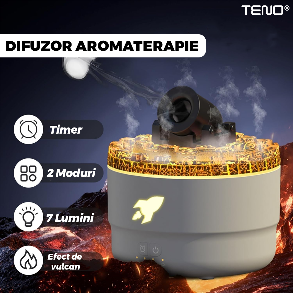 Difuzor Aromaterapie Teno2149, forma de tun, 7 culori LED, lumini dinamice, control tactil, capacitate 300ml, silentios, rezerva inclusa, umidifica aerul, alb