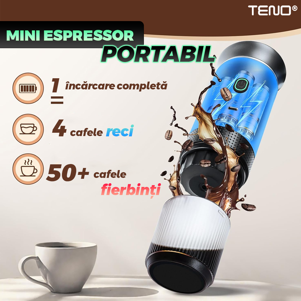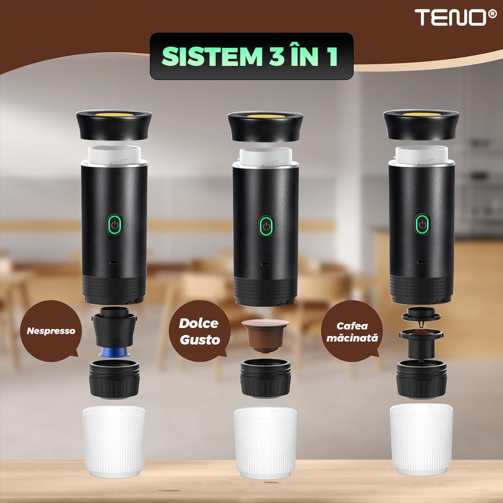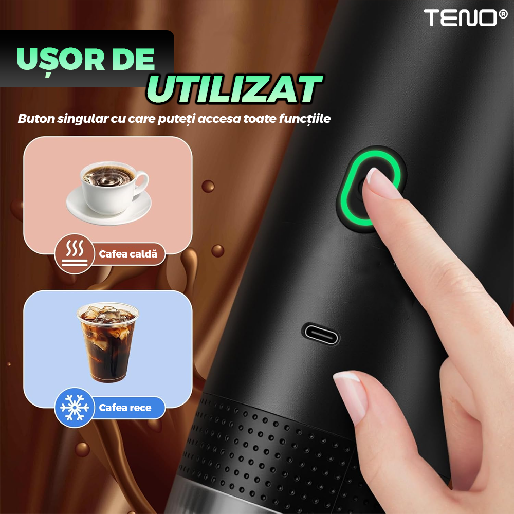Bucura-te de aroma autentica a cafelei proaspat preparate, oriunde te-ai afla, cu espressorul portabil 3 in 1. Designul sau compact si elegant il face ideal pentru acasa, birou sau calatorii, oferindu-ti confortul unui espresso de calitate in orice moment.