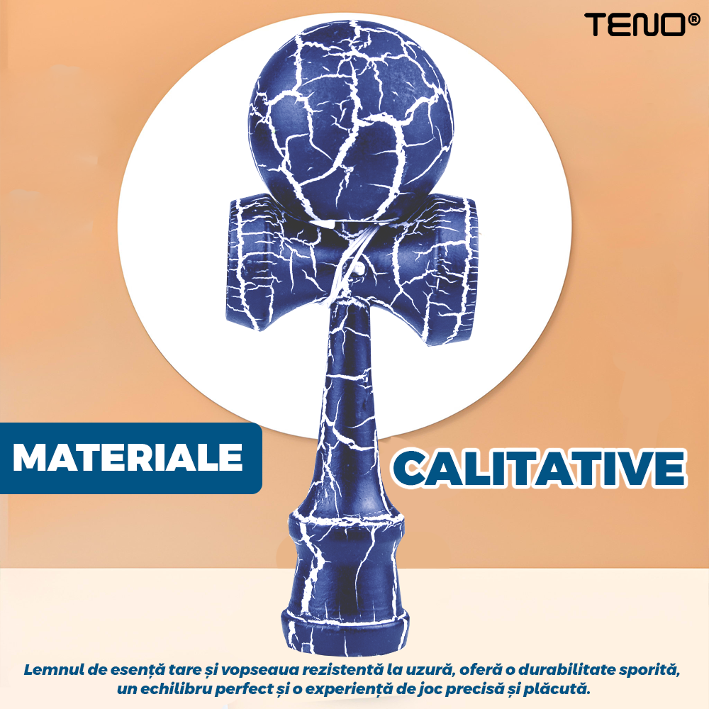 Fabricata din lemn durabil si bine echilibrat, kendama asigura o performanta excelenta si rezistenta la utilizare intensa. Finisajul atent realizat contribuie la o manevrare confortabila si precisa.