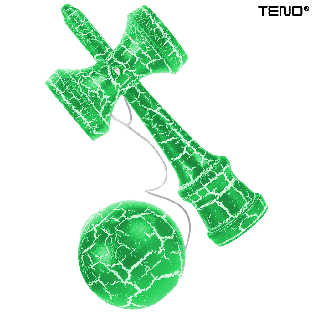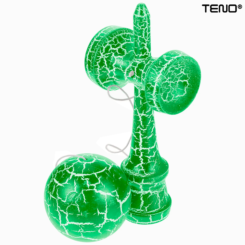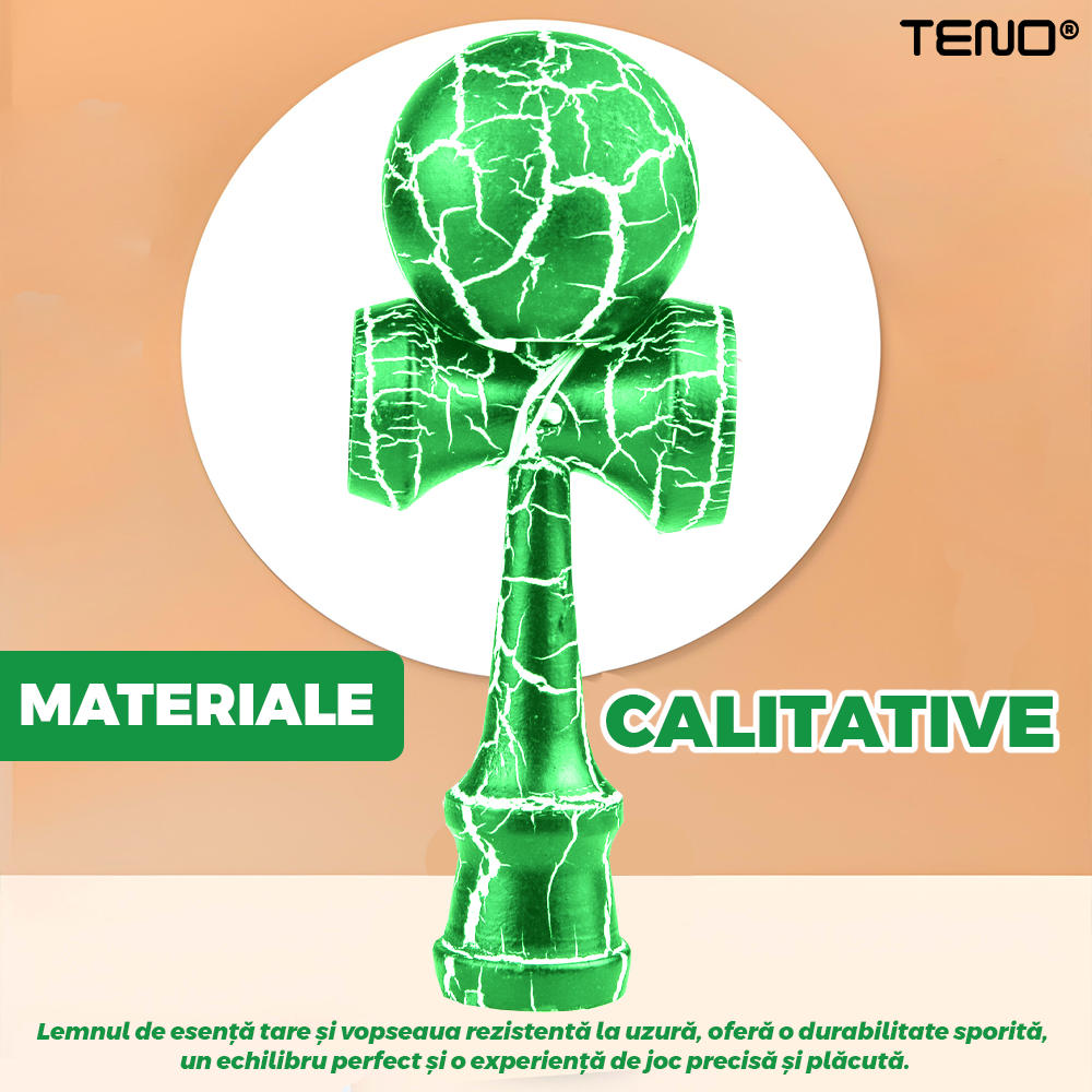 Kendama Profesionala din Lemn Teno2508, model Crack, rezistenta ridicata, 18 cm, alb/verde