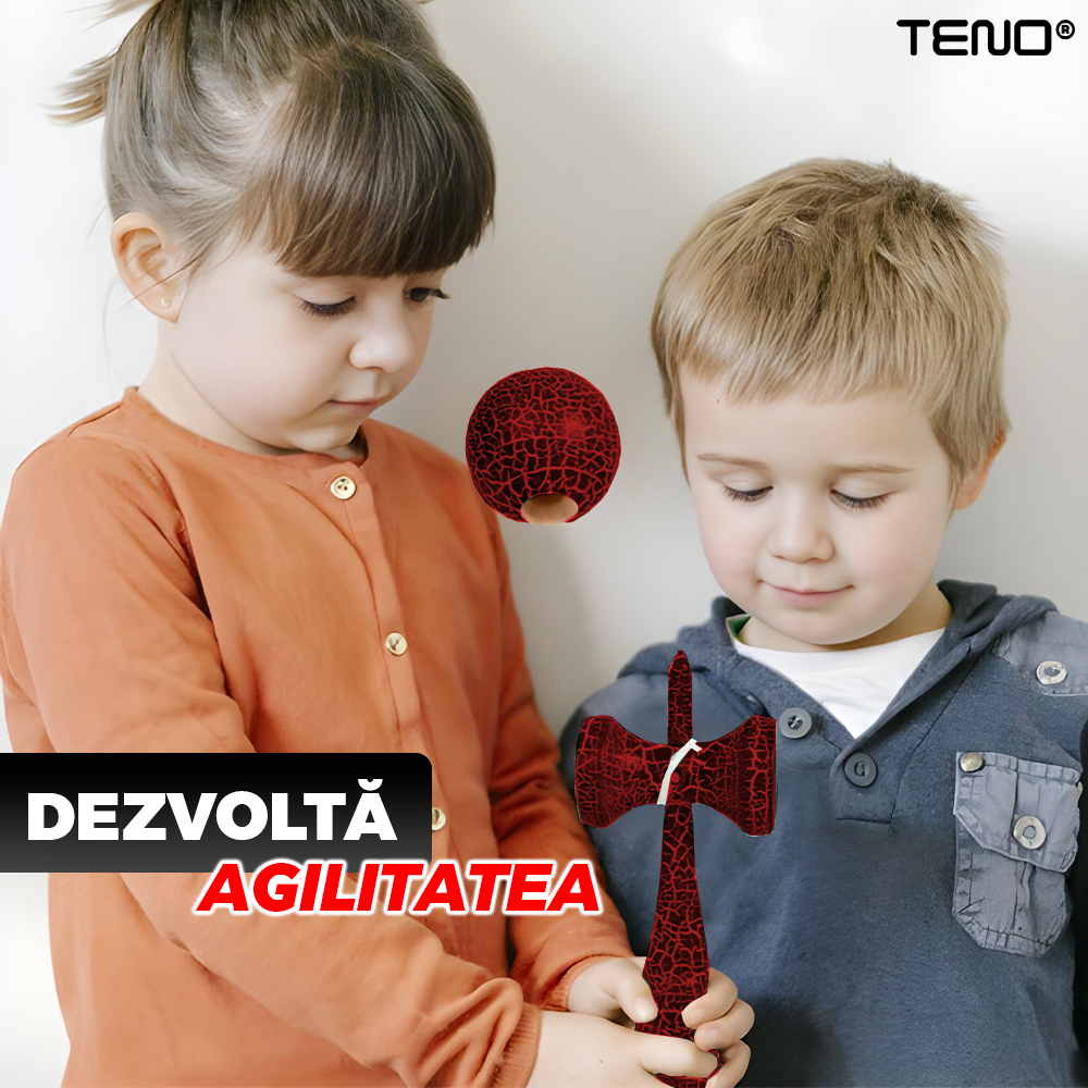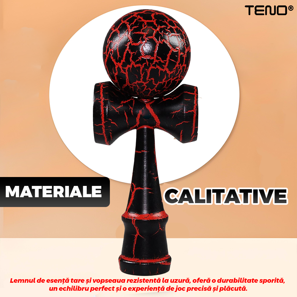 Kendama Profesionala din Lemn Teno2509, model Crack, rezistenta ridicata, 18 cm, negru/rosu
