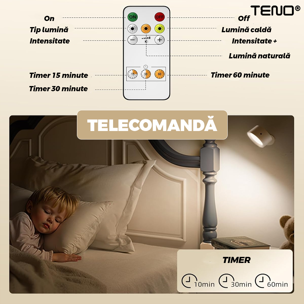 Lampa de Perete cu LED Teno2154, control prin telecomanda, control touch, usor de montat, autonomie ridicata, rotire 360°, 2000 mAh, alb