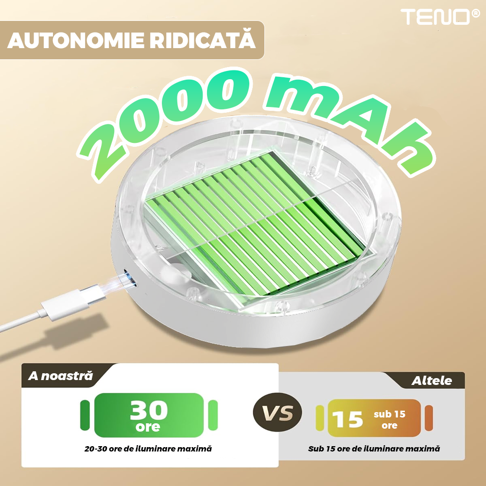 Datorita bateriei reincarcabile de capacitate mare, lampa ofera o autonomie impresionanta, asigurand ore indelungate de functionare fara a fi conectata la priza. Este perfecta pentru utilizare zilnica si pentru spatii fara acces facil la o sursa de curent.