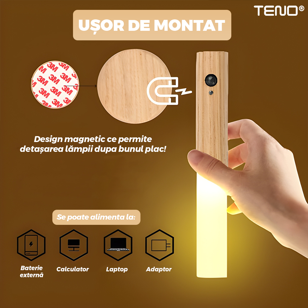 Lampa este prevazuta cu un sistem de prindere magnetica, permitand montarea si demontarea usoara fara suruburi sau cabluri inestetice. O poti muta rapid in orice incapere, oferind flexibilitate maxima in utilizare.