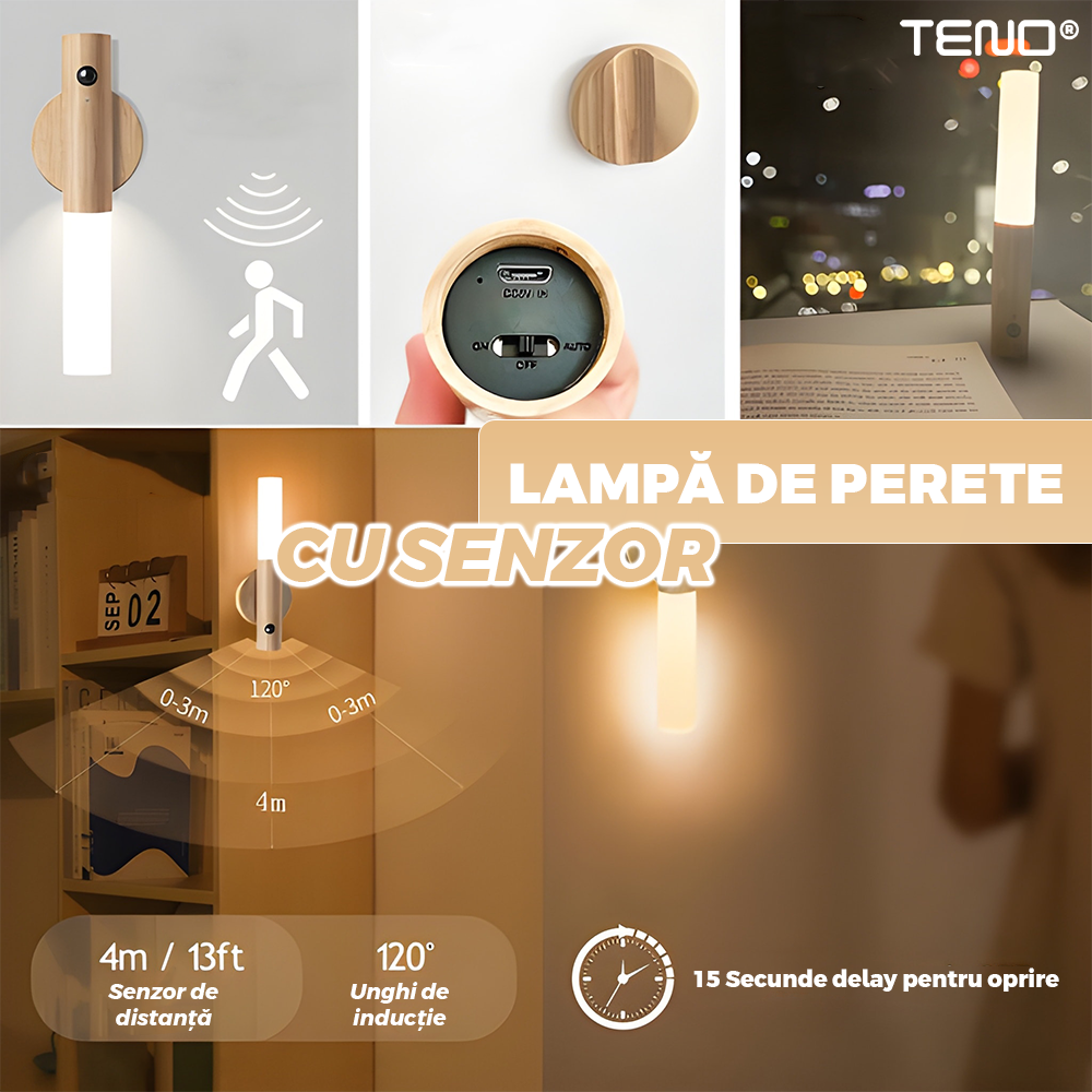 Datorita senzorului incorporat de miscare si lumina, lampa se aprinde automat atunci cand detecteaza prezenta si se stinge dupa un timp prestabilit. Este ideala pentru holuri, dormitoare, bai sau spatii de trecere, economisind energie si oferind confort sporit.