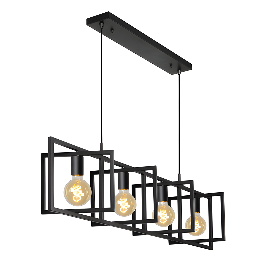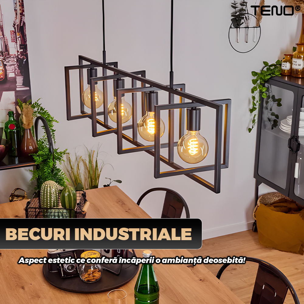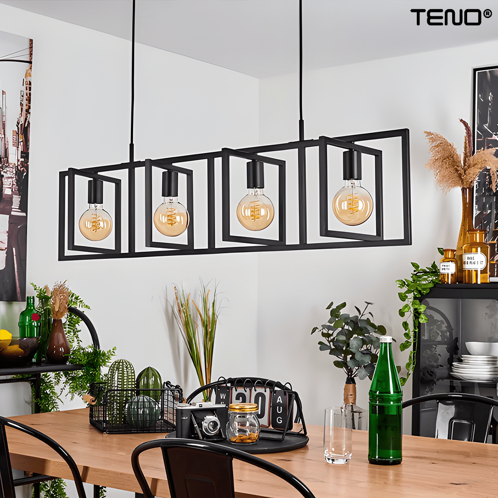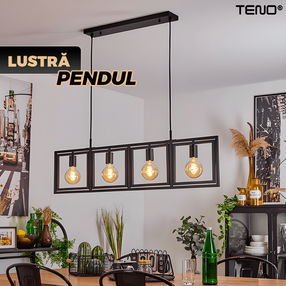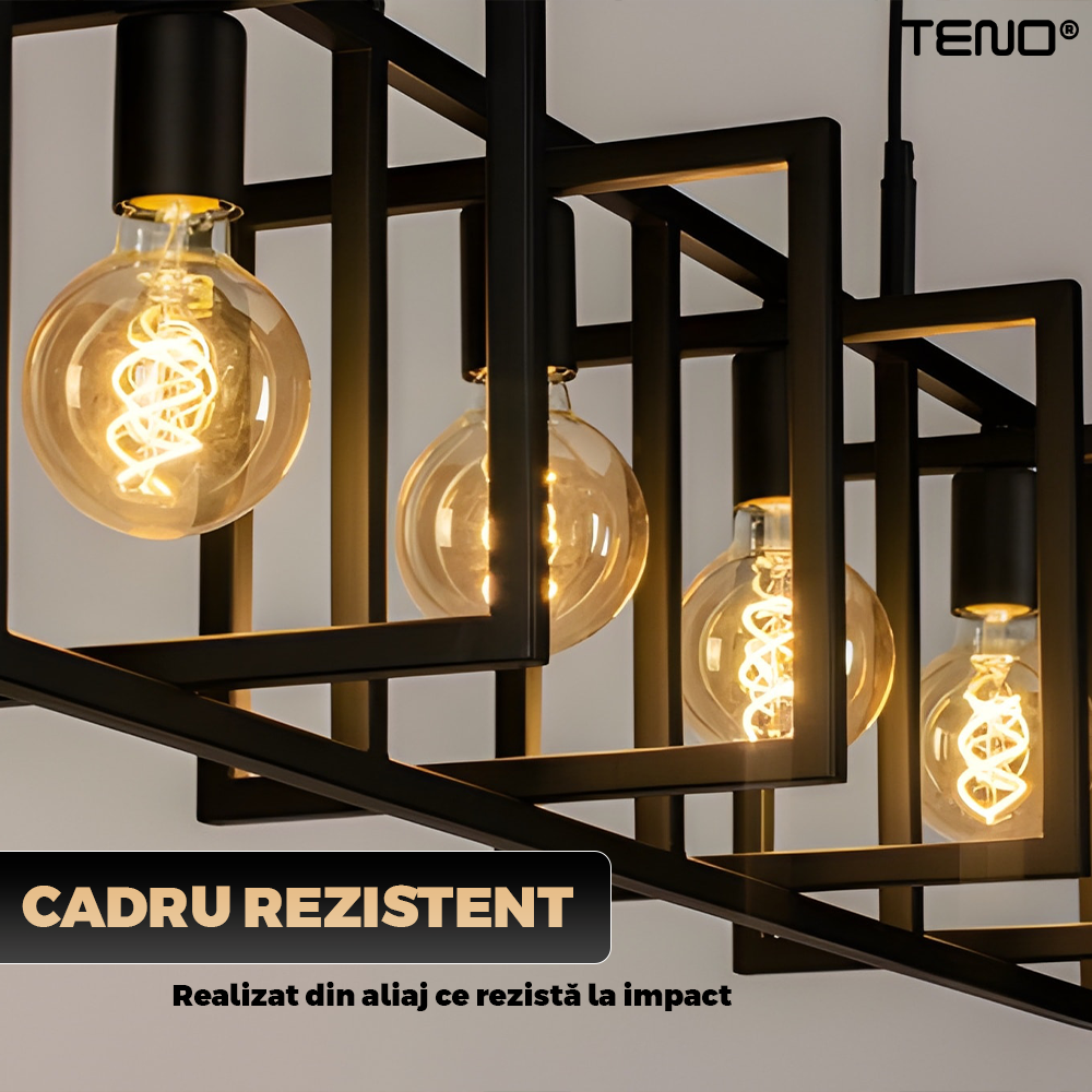 Lustra Premiumiu Teno2543, 4 cadrane, design modern, becuri industriale, materiale calitative, lumina alb cald, negru