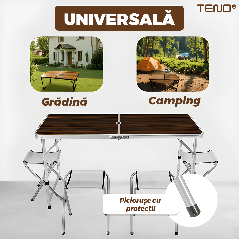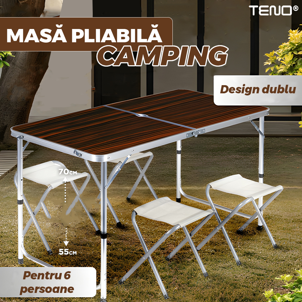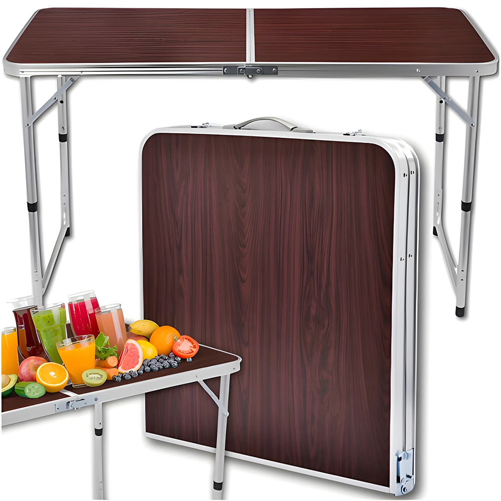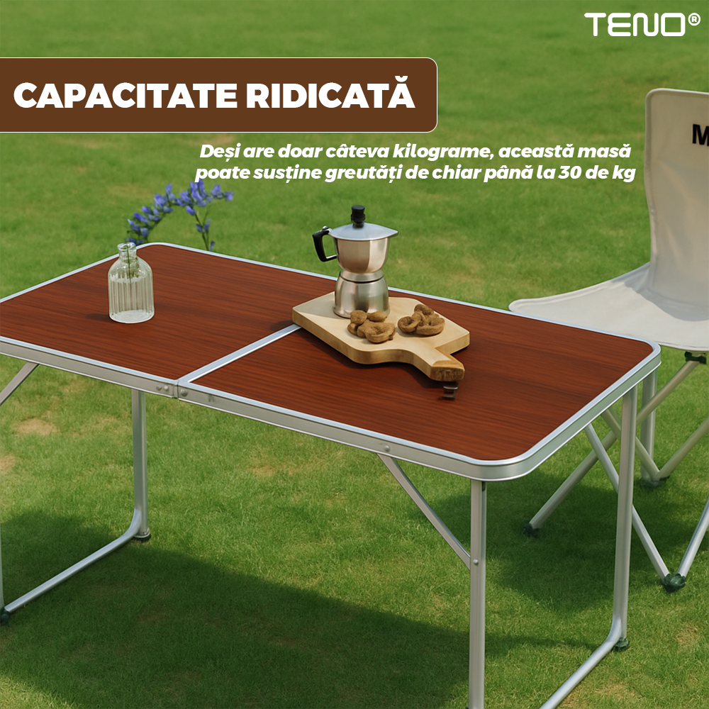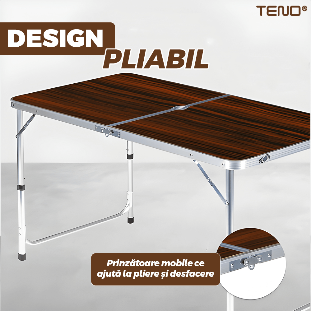 Masa Pliabila pentru Camping Teno2238, rezistenta, inaltime reglabila, materiale calitative, universala, 120 x 60 cm, maro