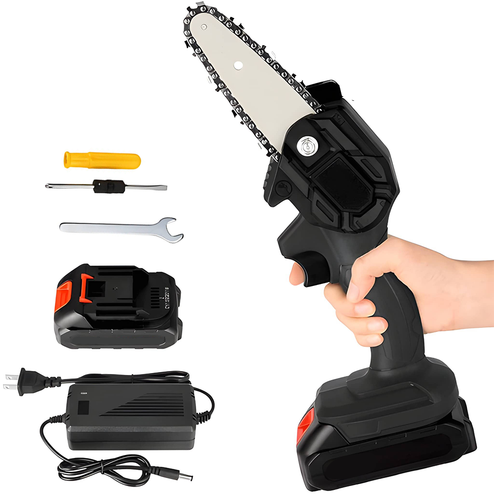 Mini Drujba Electrica Teno2320, reincarcabila, cu acumulator, geanta de depozitare, accesorii, pentru crengi/lemne mici, gradinarit, negru