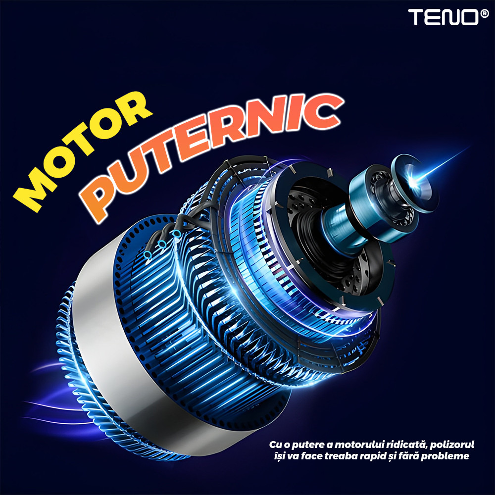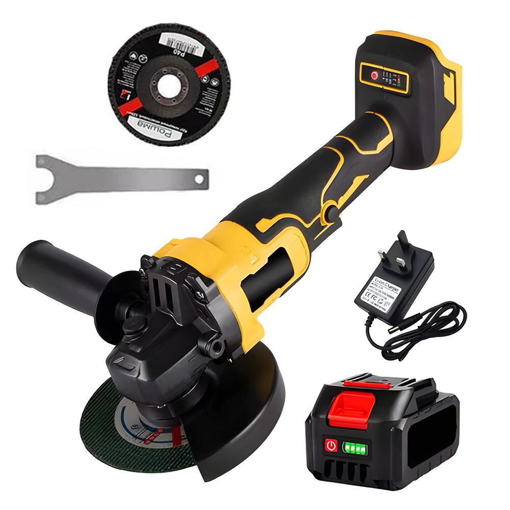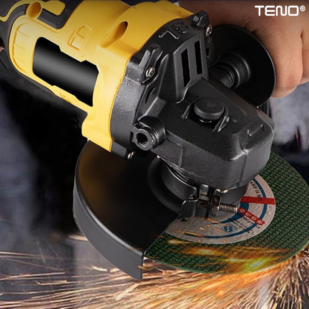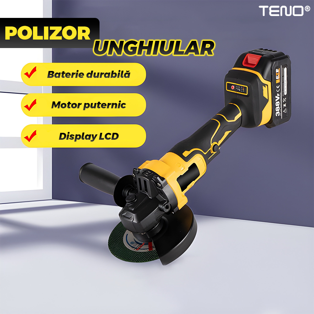 Polizor Unghiular Fără Fir Teno2219, 3 viteze, 1000 RPM, acumulator inclus, alimentare la retea, motor fara perii, protectie supraincalzire, negru/galben