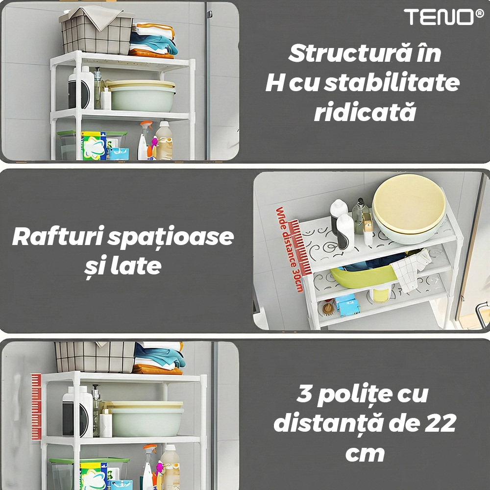 Maximizeaza spatiul din baia ta cu aceasta etajera de baie inteligent conceputa, perfecta pentru a fi amplasata deasupra toaletei sau a masinii de spalat. Cu un design robust si elegant, aceasta etajera iti ofera un spatiu generos de depozitare pentru prosoape, produse de igiena sau alte accesorii esentiale. Fabricata din tevi pluristratificate, etajera este extrem de durabila si rezistenta la umiditate, asigurand o utilizare pe termen lung in orice mediu.