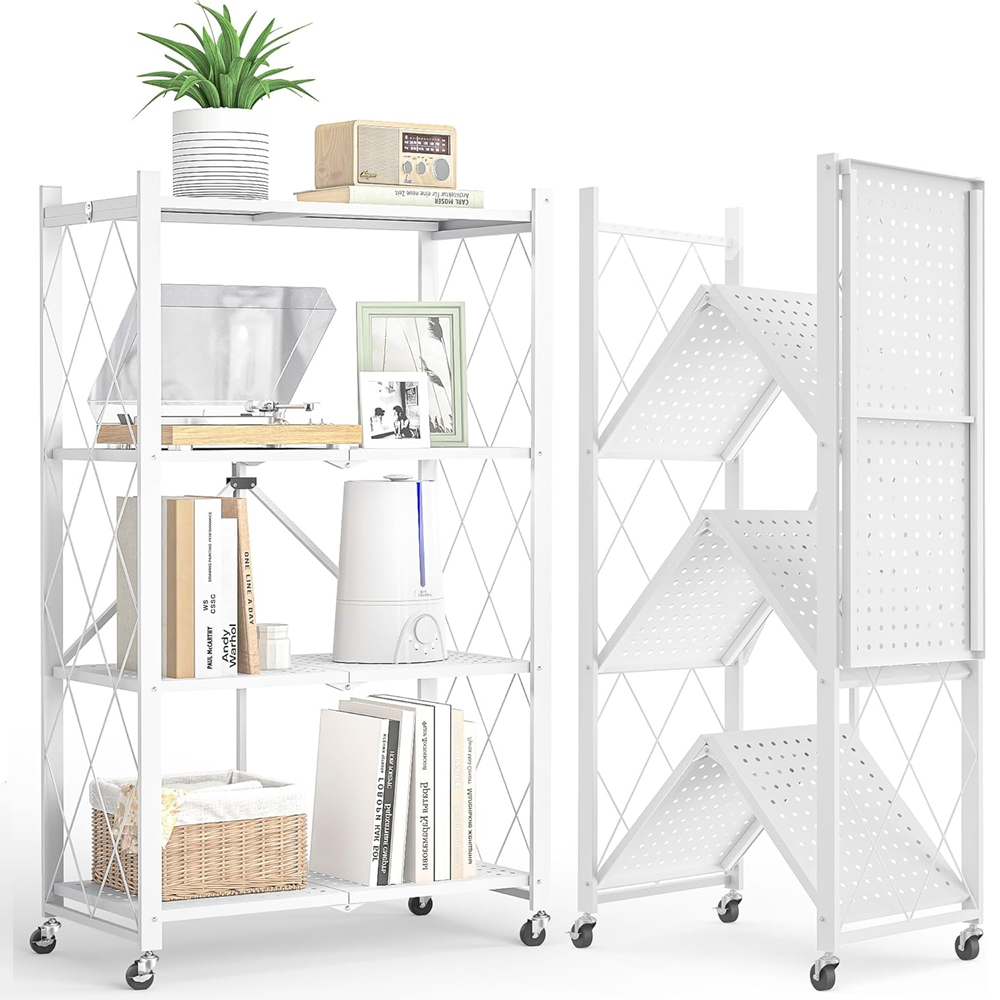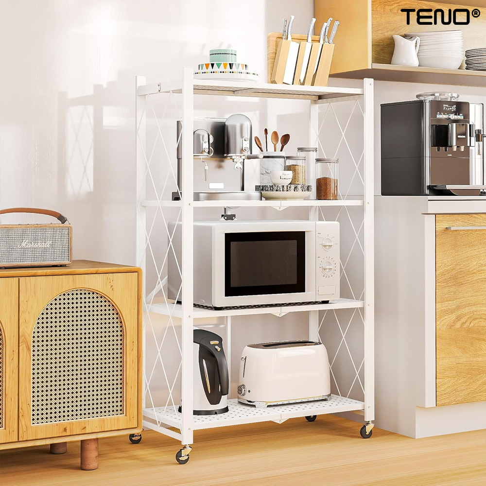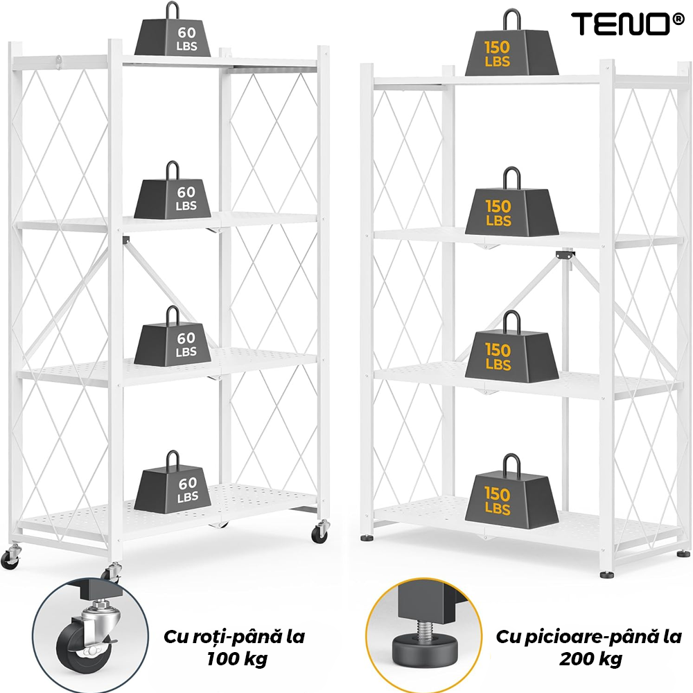 Raft Universal de Depozitare Teno2127, pe roti, pliabil, capacitate ridicata, din metal, 4 polite, organizare si depozitare, spatios, 119 cm, alb