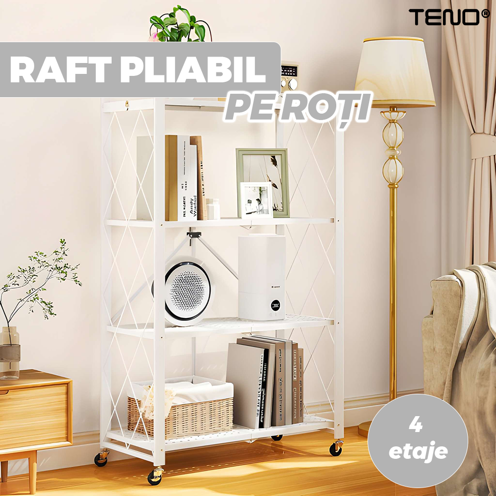 Raftul pe roti pliabil este solutia ideala pentru organizare eficienta, fiind conceput pentru a economisi spatiu, a oferi mobilitate si a sustine o cantitate mare de obiecte, atat in uz casnic, cat si profesional.