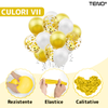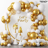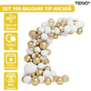 Set 105 Baloane Teno1489, Tip Arcada, pentru Petreceri/Aniversari/Evenimente, diverse modele, umplute cu confetti, latex, alb/auriu