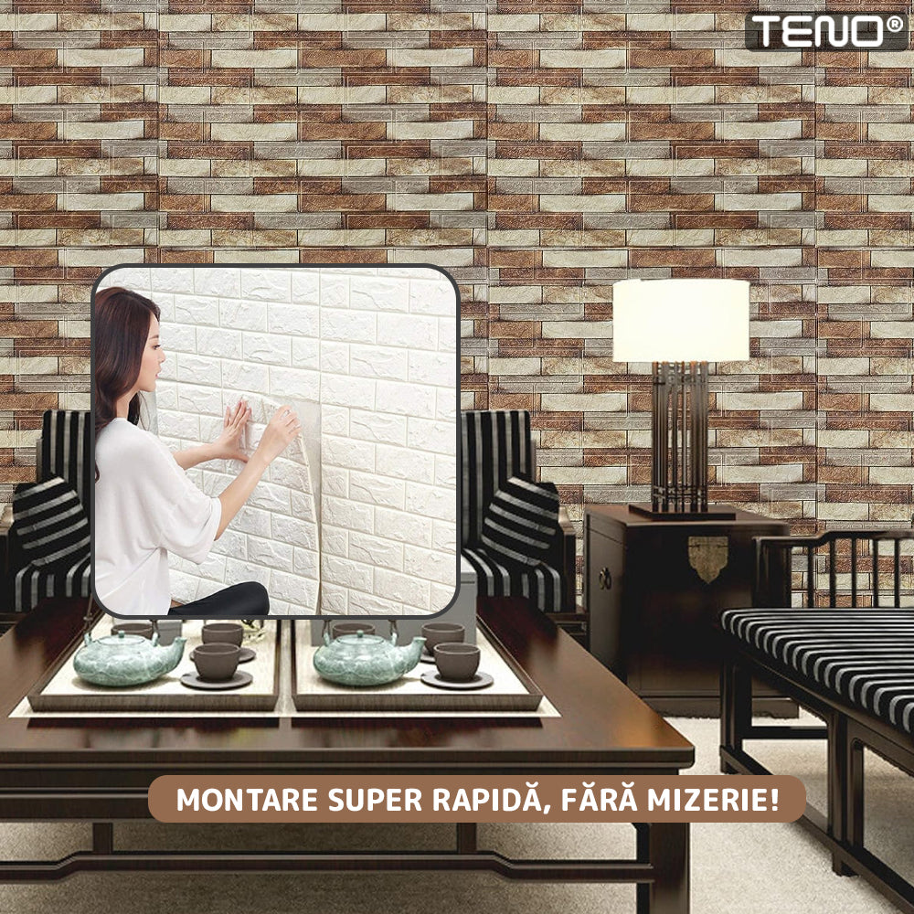 Tapetul 3D autocolant este o metoda inovatoare si eficienta in decorarea peretilor interiori. Este fabricat din spuma si are un efect natural de caramida,fiind cel mai simplu mod de a obtine spatii finisate cu stil.