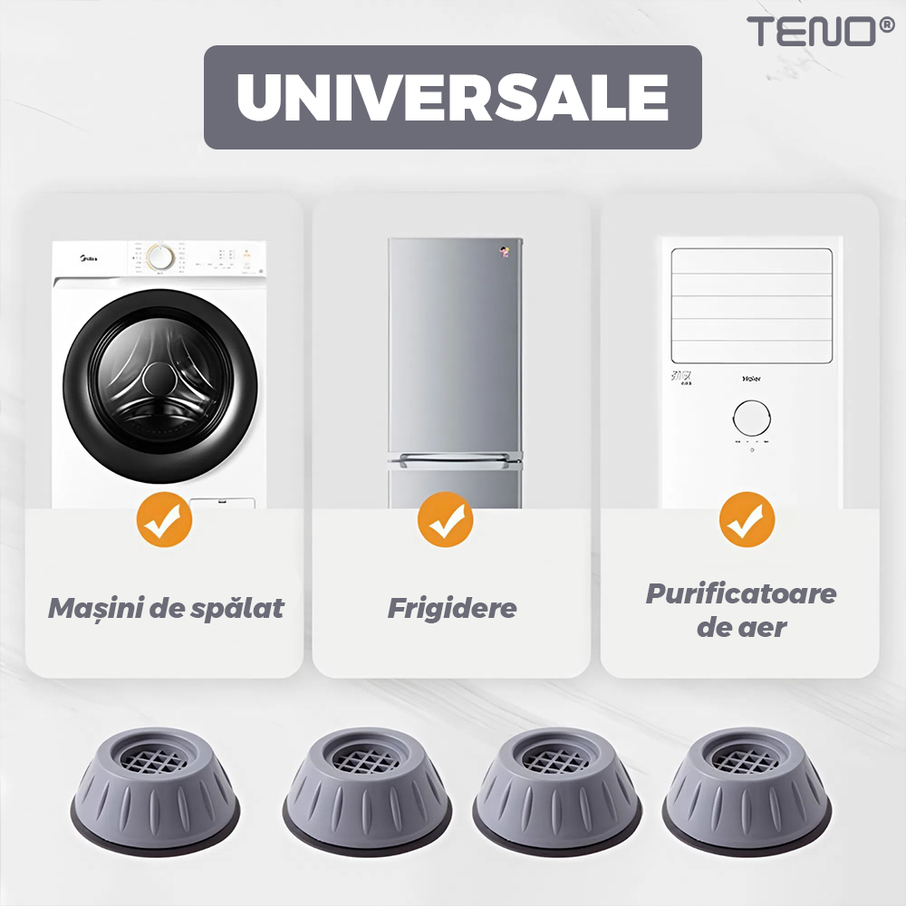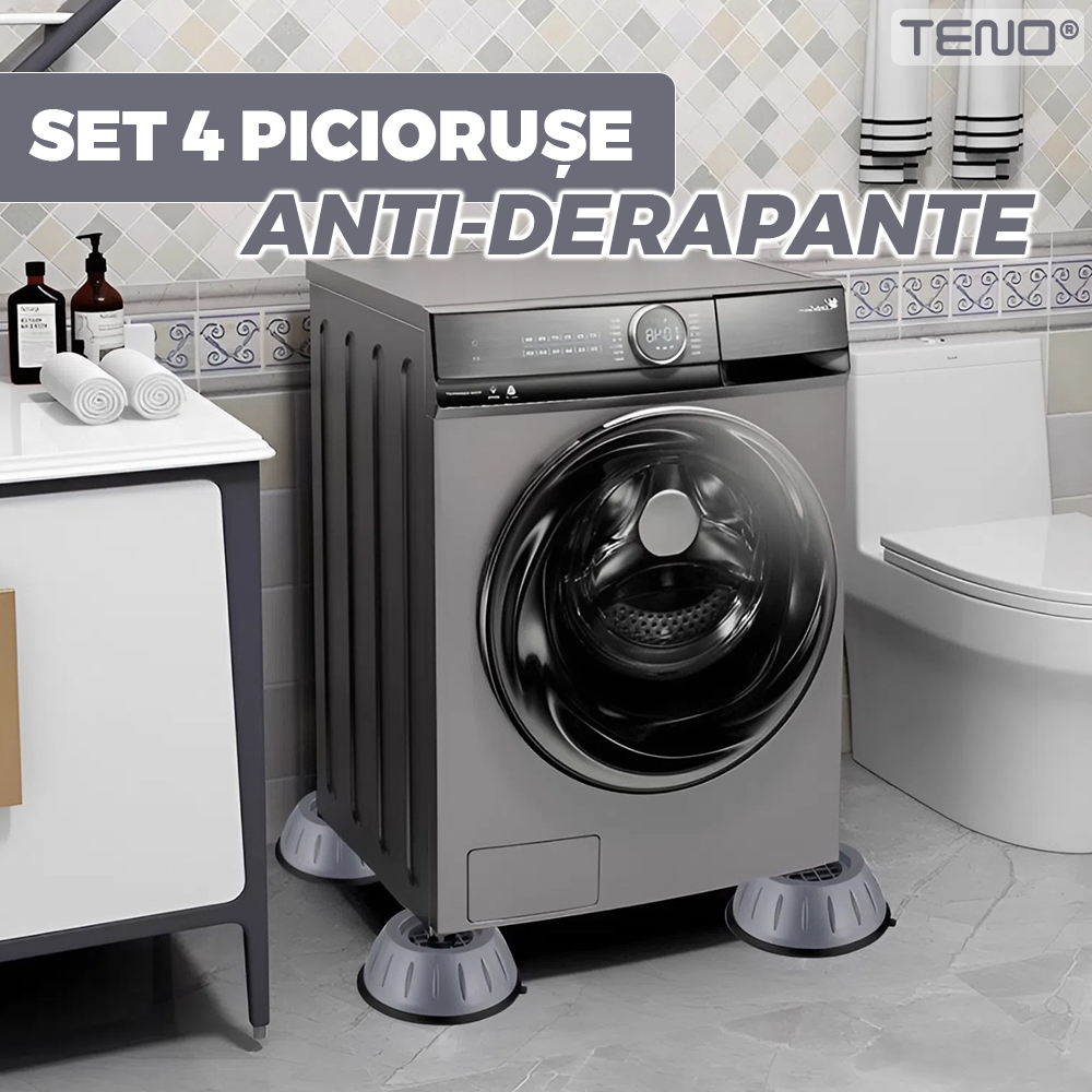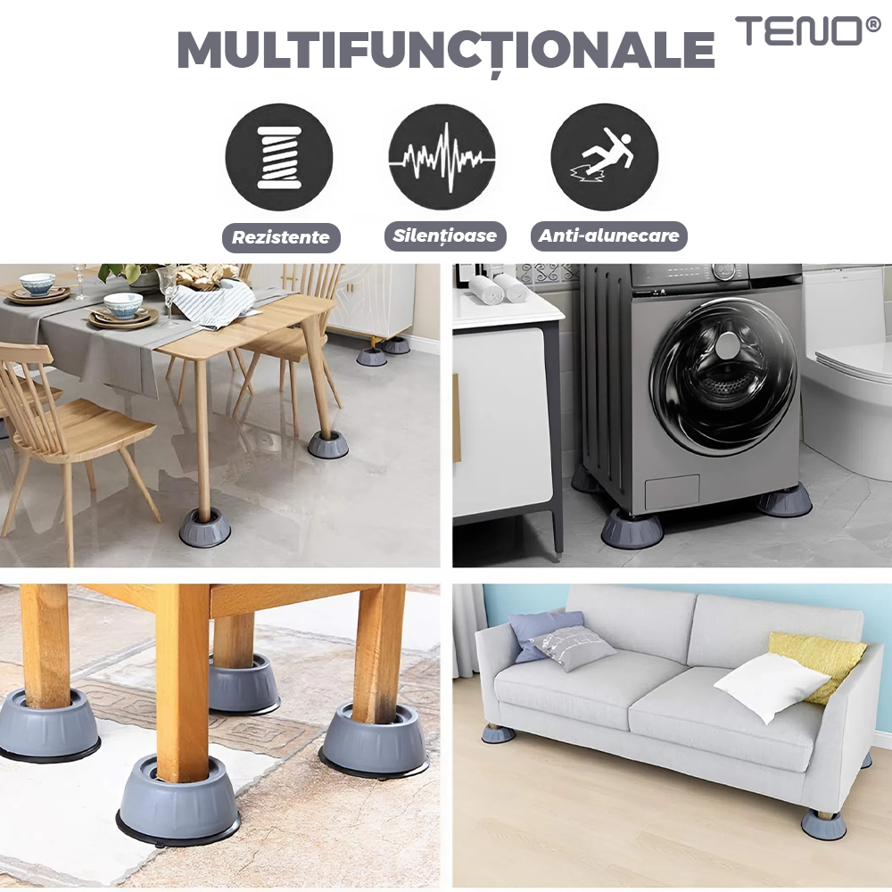 Set 4 Picioruse Anti-Derapante Teno2231, pentru masina de spalat rufe, uscator, frigider, alt mobilier, anti-zgarieturi, anti-zgomot, anti-alunecare, inaltatoare, gri
