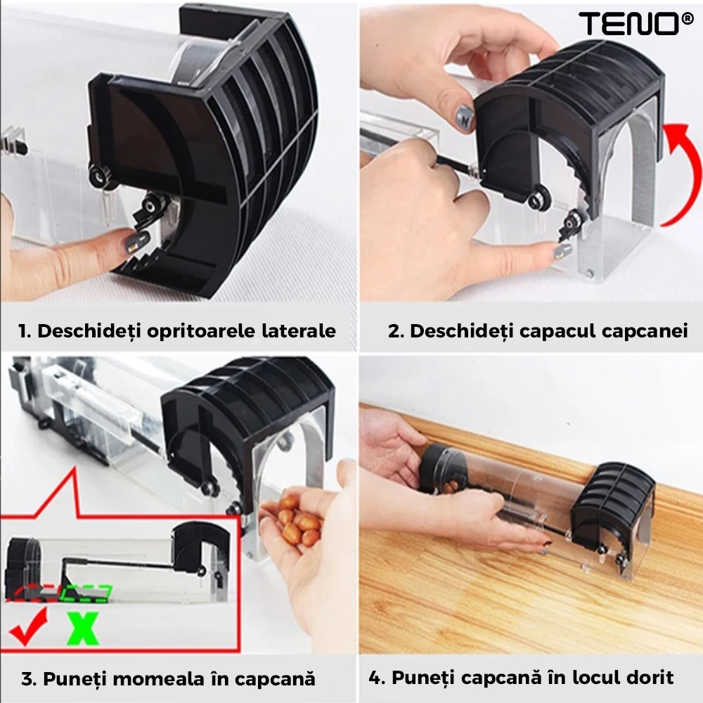 Design atragator si discret: Capcana este conceputa sa se integreze perfect in mediul tau, fiind discreta si estetica. Nimeni nici macar nu va sti ca soarecii sunt prinsi intr-un mod atat de ingenios!