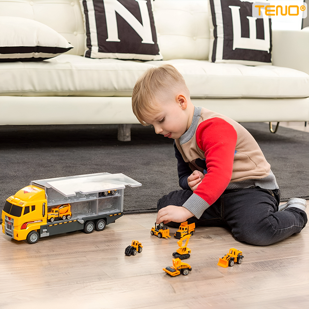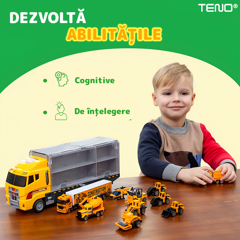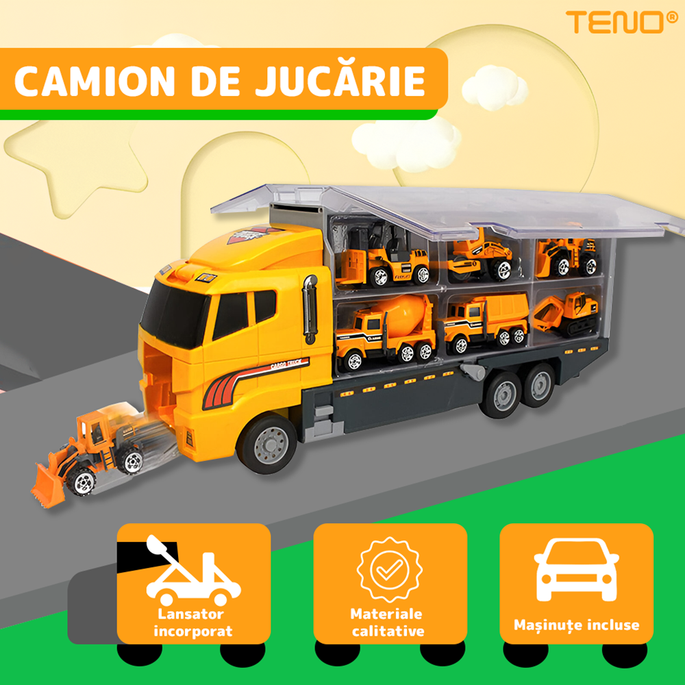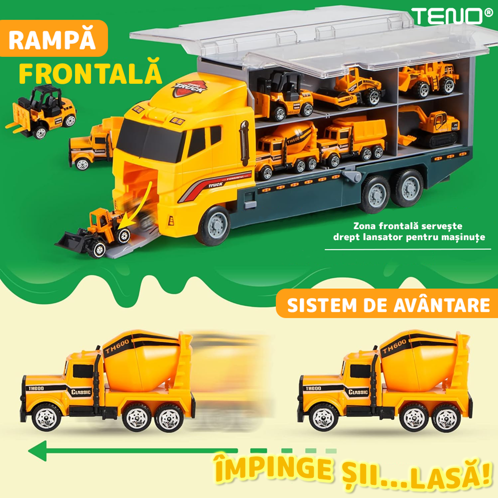 Descopera bucuria jocului cu setul nostru camion trailer de jucarie, perfect pentru micii pasionati de vehicule si aventuri! Construit din materiale calitative, durabile si sigure pentru copii, acest set ofera o experienta de joc interactiva si captivanta.