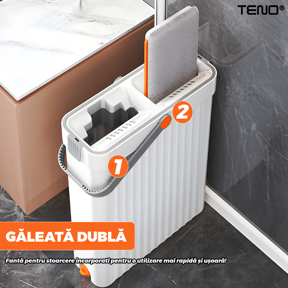 Galeata este prevazuta cu doua compartimente separate – unul pentru spalare si unul pentru stoarcerea mopului. Astfel, apa murdara nu se amesteca cu cea curata, oferind rezultate mai igienice si economisind timp.