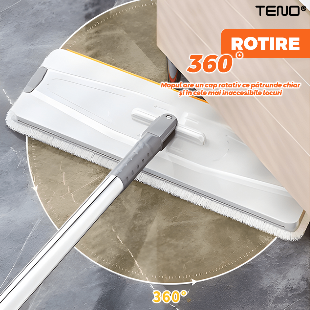 Capul mopului se roteste complet la 360 de grade, permitand accesul facil in colturi, sub mobilier sau in spatii greu accesibile. Aceasta caracteristica garanteaza o curatare completa, fara a fi nevoie sa depui efort suplimentar.