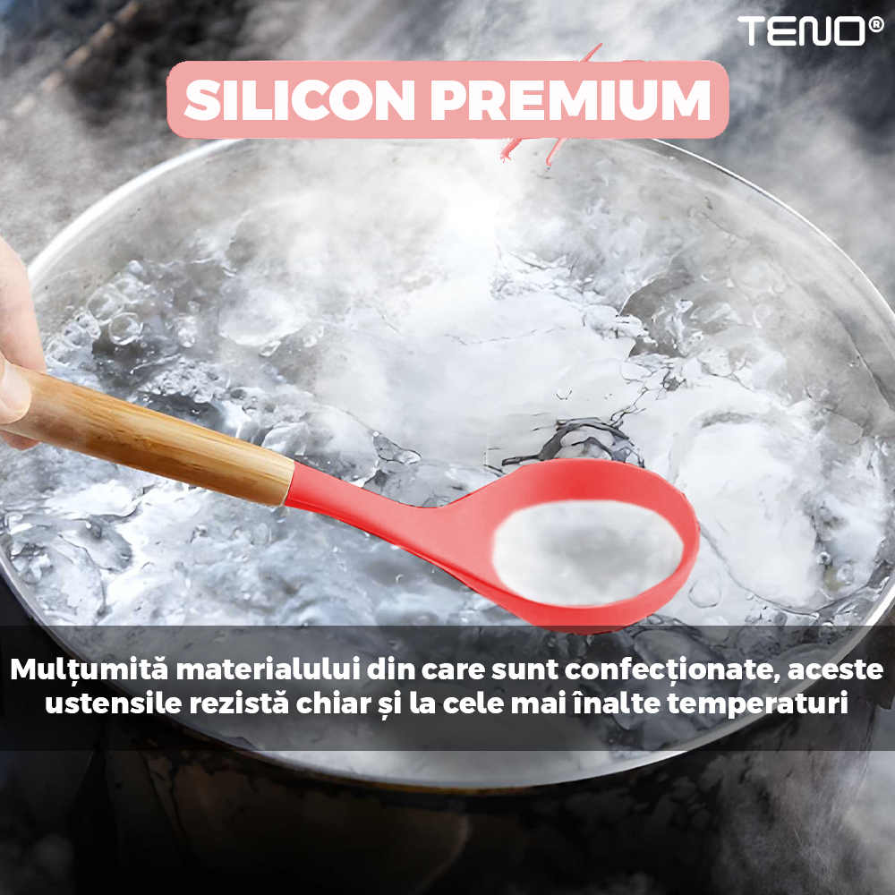 Descoperiti setul perfect de ustensile de bucatarie care va va simplifica viata in bucatarie - Setul nostru de 12 ustensile de bucatarie din silicon, antiaderente, sigure si usor de curatat!