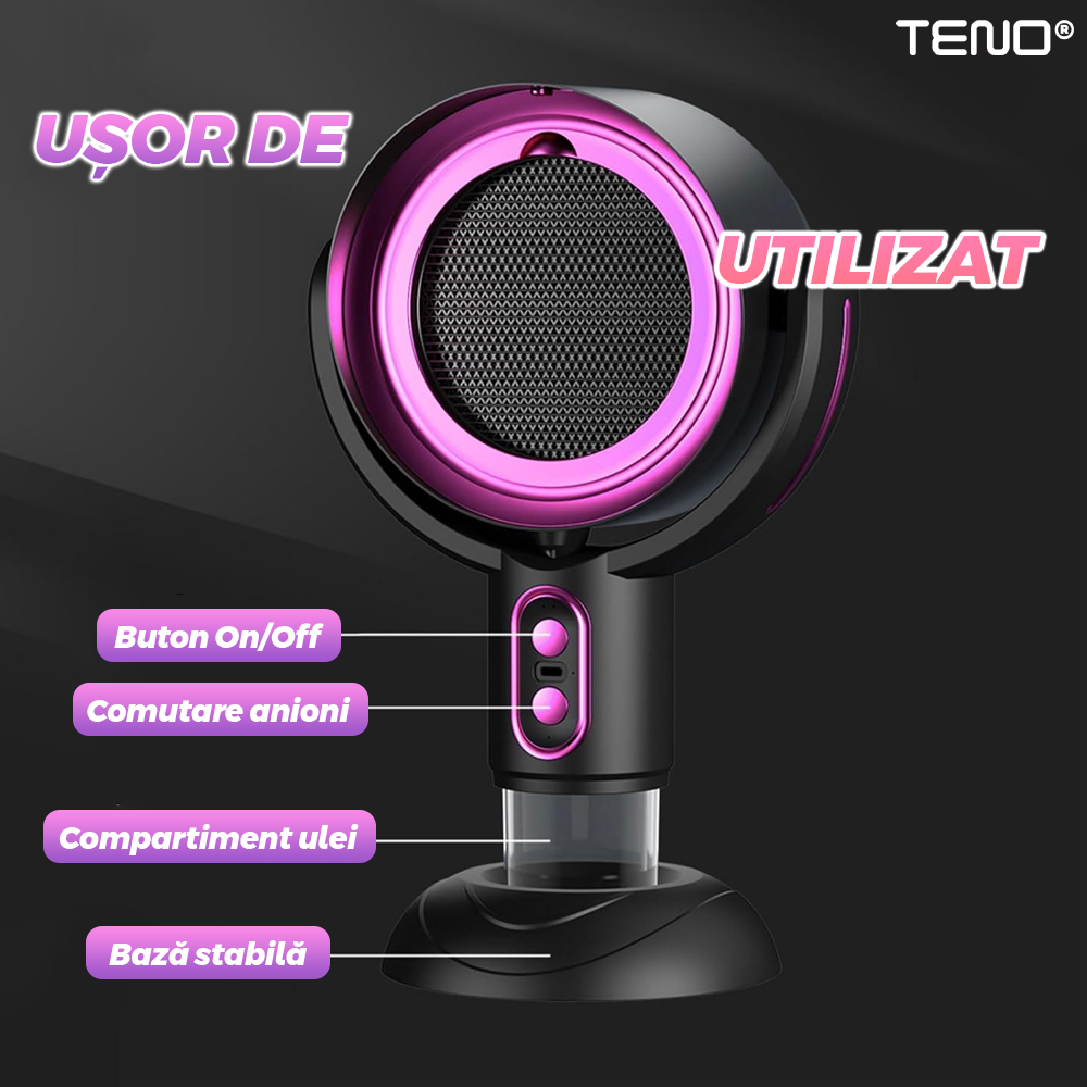 Difuzor Aromaterapie Teno222, lumini ambientale, control manual, 3 trepte de temporizare, capacitate 500ml, silentios, umidifica aerul, stejar inchis