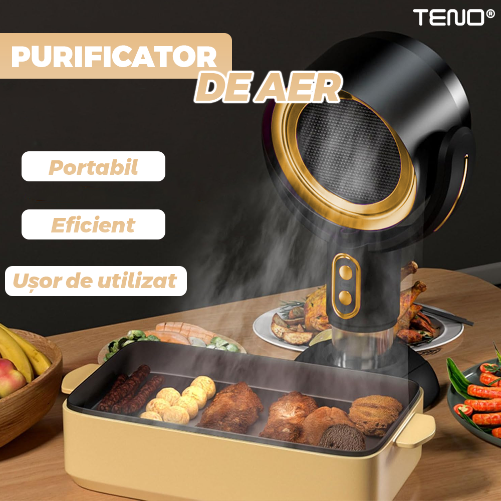 Ventilator de Masa Teno2504, purificator de aer, hota de ulei si abur, compartiment pentru ulei, inclinabil, structura stabila, rezistenta ridicata, auriu
